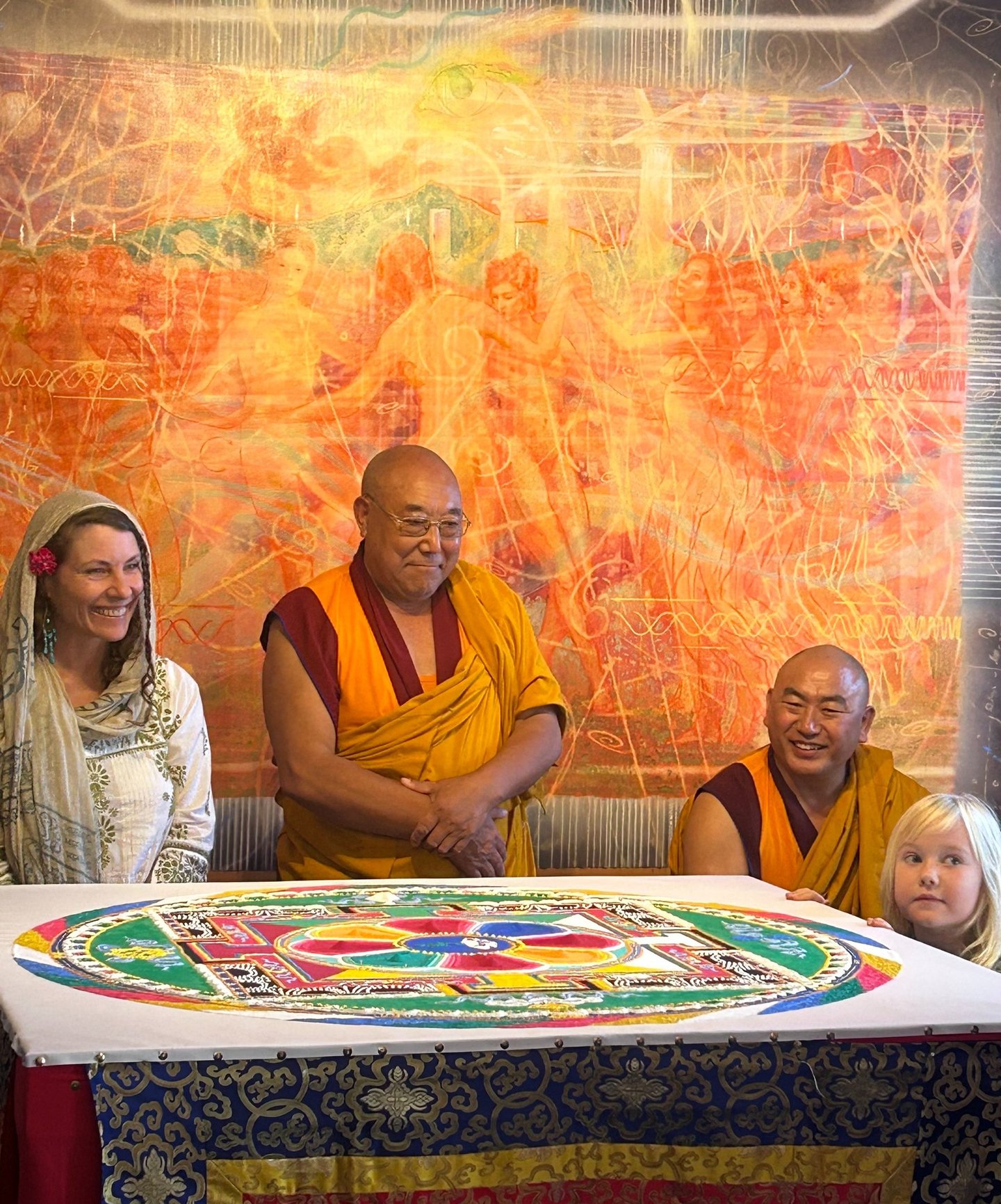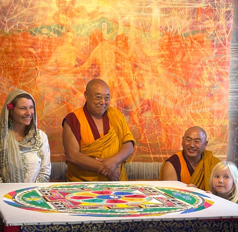 The Tibetan monks of Sera Jey Monastic University were visiting the Well Spiritual Center at 45004 Albion Street in Mendocino for a four-day, spiritual, live-art ceremony creating, ritually destroying and dispersing into flowing water (to emphasize the transitory nature of all things), a Medicine Buddha Sand Mandala depicting the Buddha of Healing, the manifestation of the healing energy of all enlightened beings.
